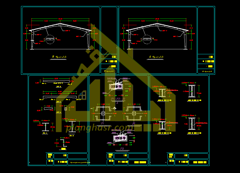 در نقشه صنعتی سازه سوله  با دهانه 20 متر هر سه سوله دارای نقشه های زیر می باشند :