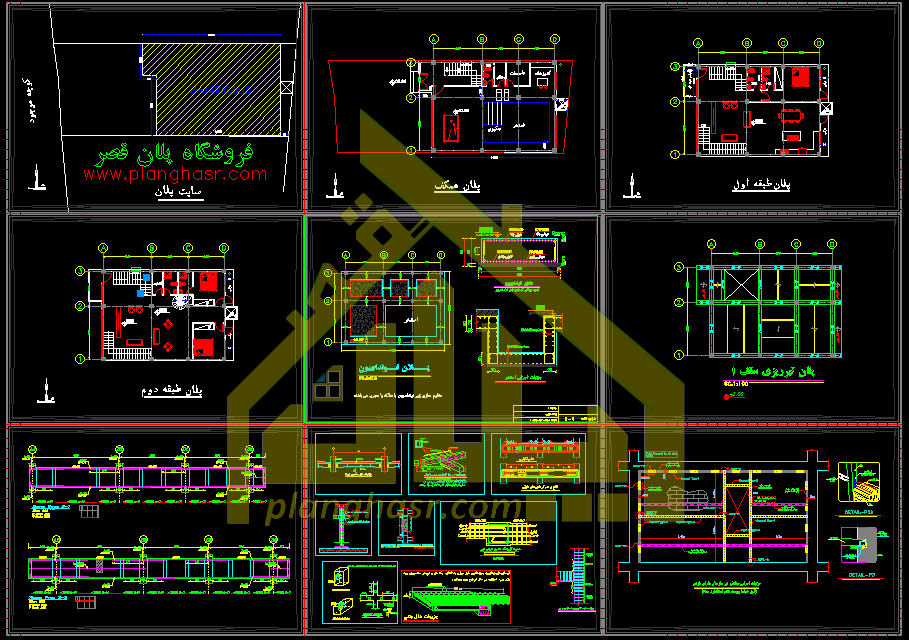 در نقشه سازه نیز همه نقشه های لازمه و کامل برای همه طبقات بخوبی در فایل دانلودی ( در نرم افزار آتوکد ) قرار گرفته و اگر نیاز به فایل محاسبات Etabs و Safe نیز داشتید می توانید آن را از پلان قصر دریافت کنید .
