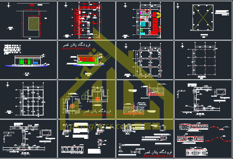 نقشه سازه بتنی 11 شیت (فایل نقشه اتوکد . dwg) نقشه پلان فونداسیون و آکس بندی ستون ها به همراه مقطع های آنها – برش تیپ ستون ها و شناژ کف – پلان تیر ریزی سقف ها – جزئیات تیرچه ها نحوه اتصال به تیر – نحوه خاموت گذاری – نحوه کرسی چینی و …