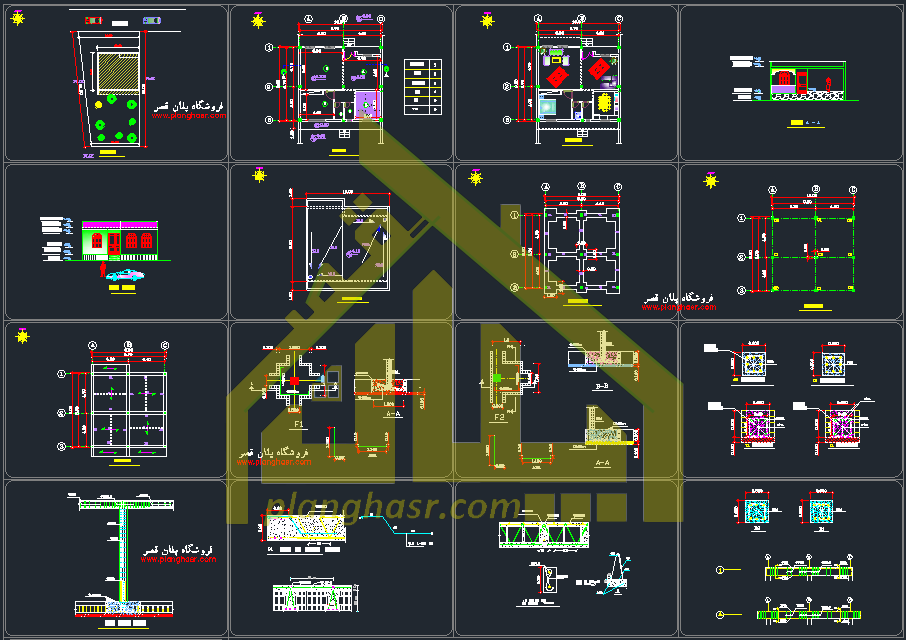 نقشه سازه بتنی 11 شیت (فایل نقشه اتوکد . dwg) نقشه پلان فونداسیون و آکس بندی ستون ها به همراه مقطع های آنها – برش تیپ ستون ها و شناژ کف – پلان تیر ریزی سقف ها – جزئیات تیرچه ها نحوه اتصال به تیر – نحوه کرسی چینی و …